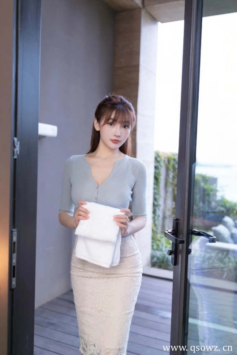 模特陆萱萱性感浅色长裙露白色内衣配白丝袜秀柔美身姿诱惑写真73P