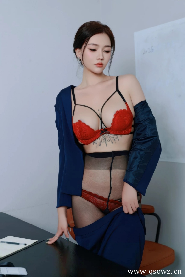 模特娜比深色OL服饰露红色内衣配超薄黑丝秀凹凸身材诱惑写真75P